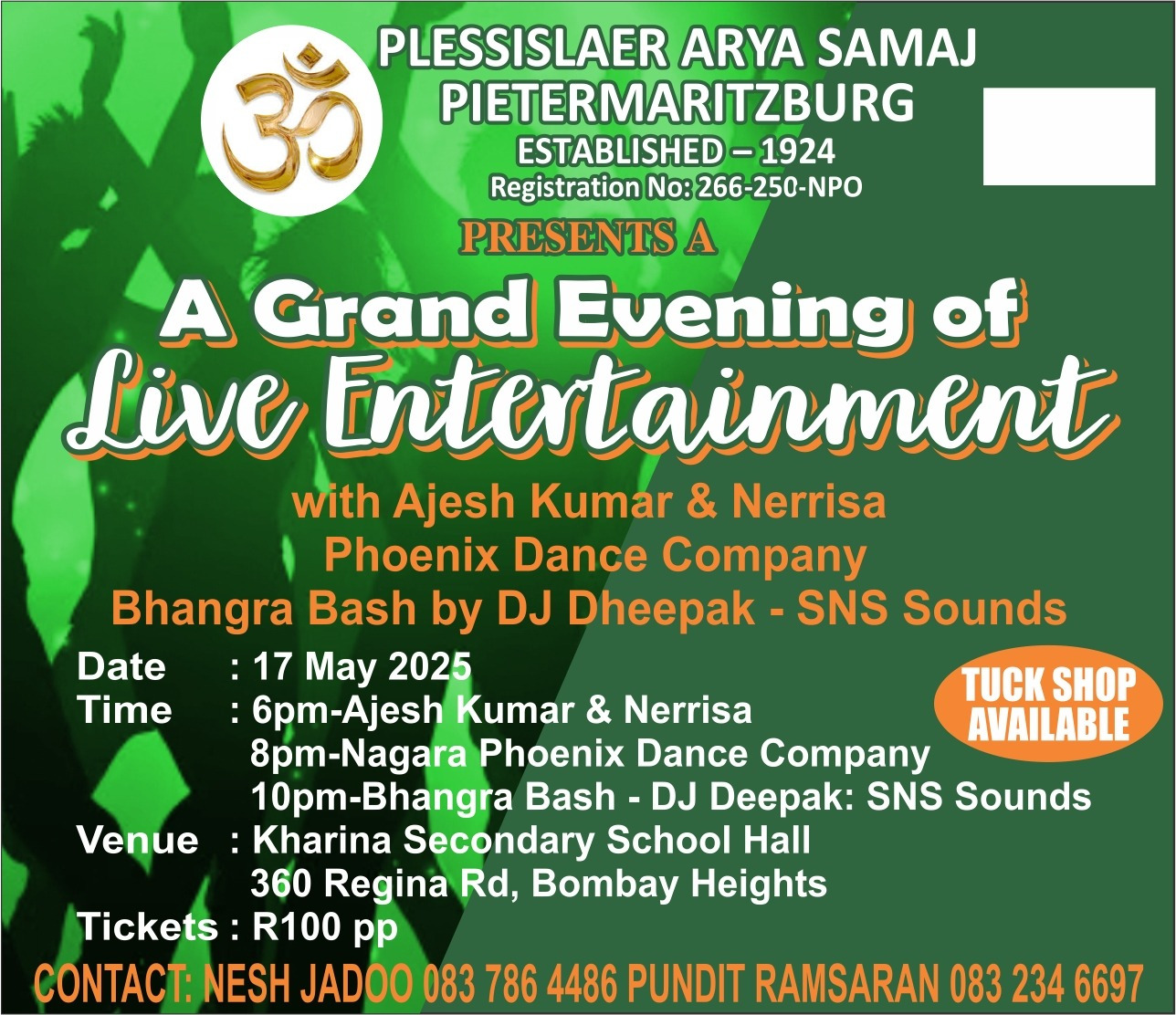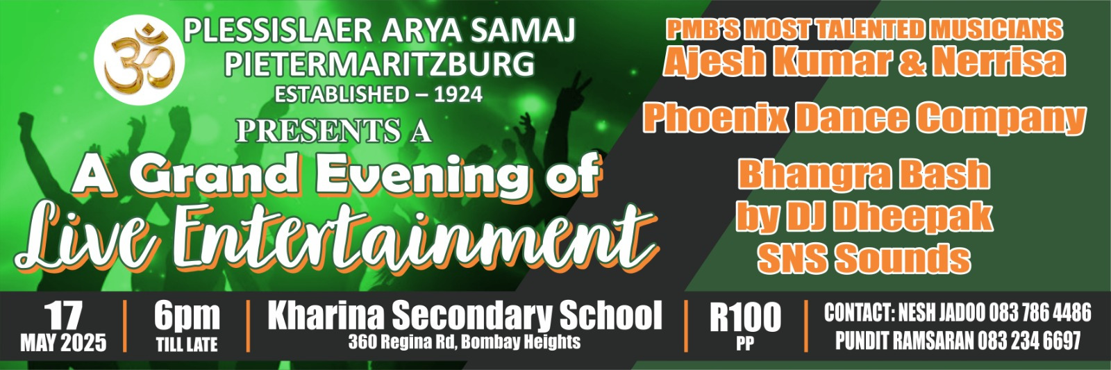On 17th May 2025 Plessislaer Arya Samaj hosted a 'Grand Evening of Live Entertainment'.